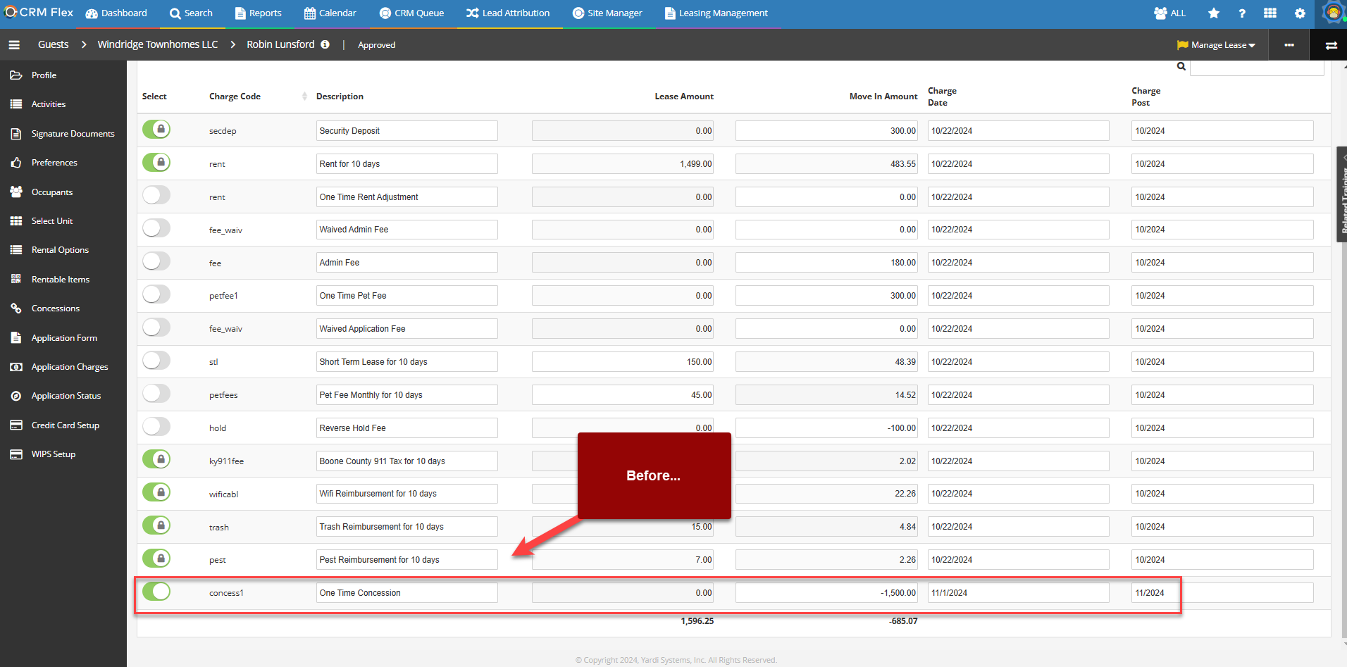 How to Reset Lease Charges in CRM